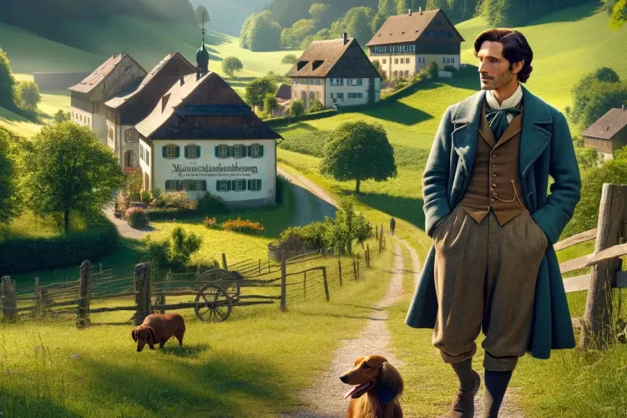 Die Bilder entfalten sich. Es taucht ein Mann auf, teuer gekleidet (französisch), er trägt eine Perücke, er schwitzt, könnte 17./18. Jahrhundert sein, die Gegend spielt am Schönbuchrand bei Herrenberg, er läuft sehr gelassen vor sich hin, hat einen braunen Hund dabei, einen Dackel, einen Jagdhund, ohne jede Spannung, sehr relaxed, er läuft an Mönchsberg, an Kayh vo…